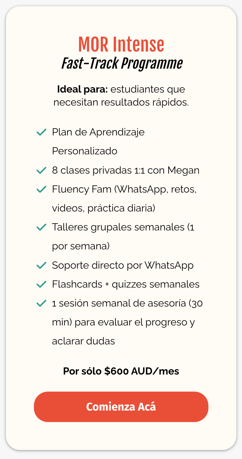 No deberías dejar de ser tú, mor. Este programa fue creado especialmente para los latinos en Australia, con un método práctico, culturalmente cercano y adaptado a tus metas reales, por una profesora comprensiva de los retos de los inmigrantes latinos en Australia.